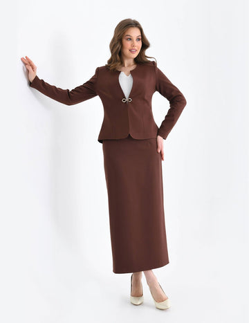 NDL Women Brown Women's Suit with Pencil Skirt - Swords