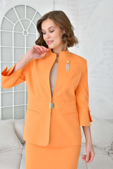 NDL Women Orange Women's Suit with Brooch Detail Skirt - Lauderhill