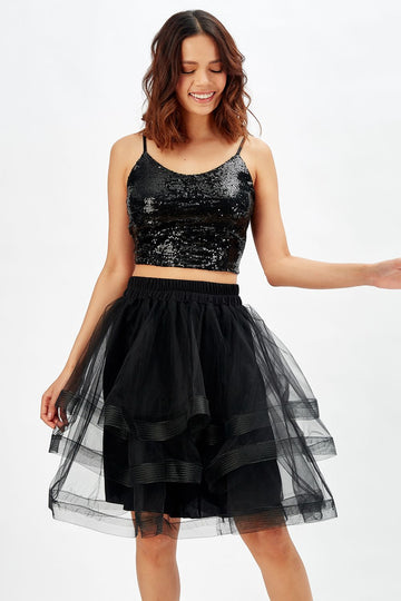 SNS Sense Black Shiny Layered Evening Skirt - Arroyomolinos