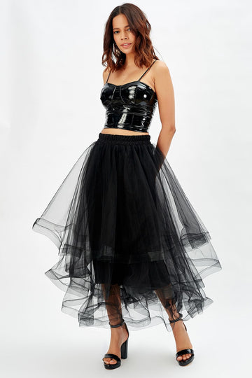 SNS Sense Black Shiny Layered Long Tulle Evening Skirt - Covina