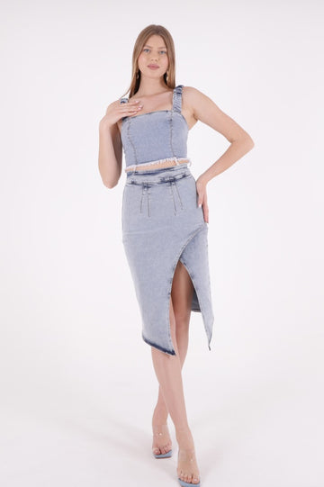 XLJ Asymmetric Medium Denim Skirt with Front Darts and Side Slit Mixed - Savigny-sur-Orge