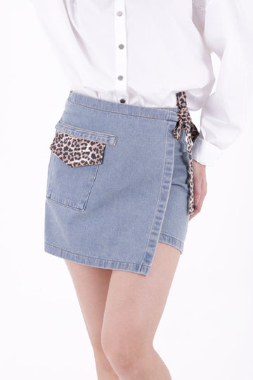 XLJ Square Pocket and Tie Detailed Short Denim Skirt - Lecce