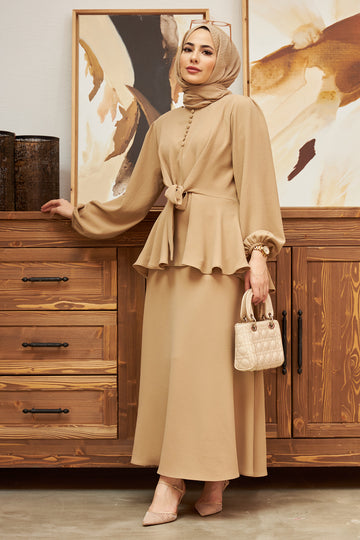 ZRF Women Buttoned Front Skirt Suit - Mink - Huntington Park