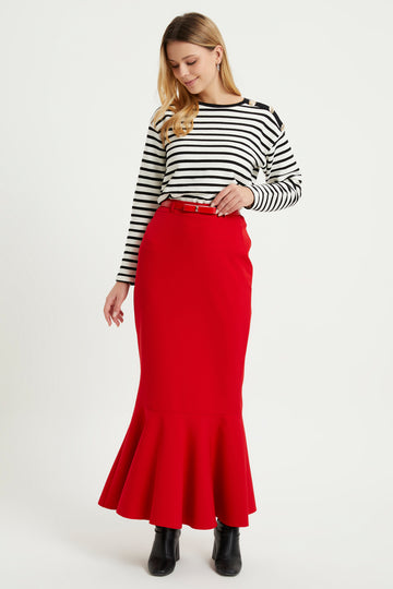 ZRF Women Flounced Belted Skirt - Red - Temple