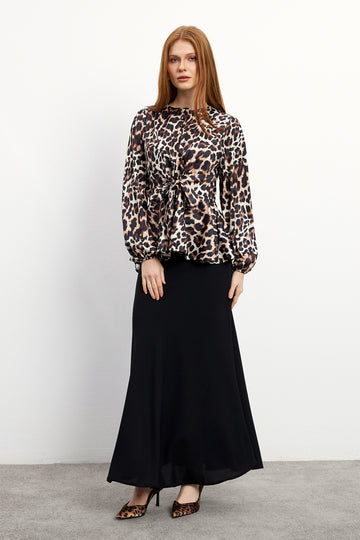 Leopard Patterned Blouse Skirt Set