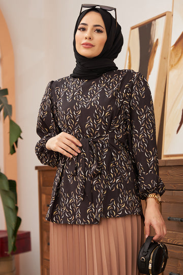 Patterned Skirt Suit Skirt Length: 90 cm Tunic Length: Front length 70 cm, Back length 75 cm Tunic with belt detail has a hidden zipper at the back. Skirt waist is elastic.