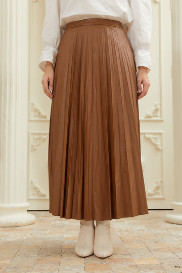 ZRF Women Pleated Leather Skirt - Brown - Brampton