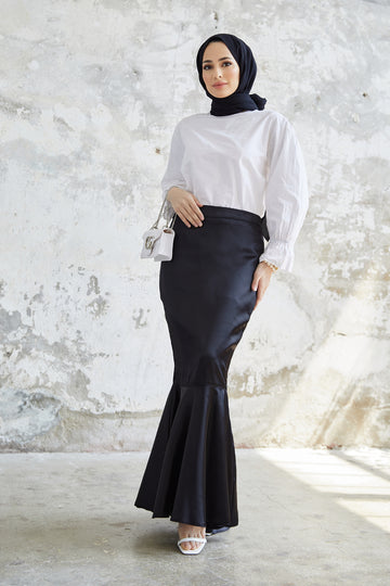 ZRF Women Satin Skirt with Ruffles - Black - Chimalhuacán