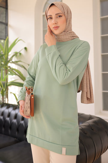 Product Feature: The product is true to size, you can take your usual size. Product Information: Length: 77 cm Chest: 120 cm Waist: 118 cm Fabric: 80% Cotton 20% Polyester Model Measurements: Height: 178 cm, Chest: 80 cm, Waist: 70 cm, Hips: 82 cm The product on the model is size M/38. There may be a slight difference in color tone due to concept shootings in the product color. Our new season tunic model is one of the colors of the energy series. As the name suggests, our two-thread tunic model will boost your energy. Our tunic offers a sporty elegance with its oval neckline and low shoulder design.