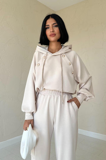 ELS Hooded Sweatshirt and Cargo Pants Set - Beige - Bârlad