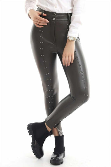 ELS Stone-embellished Leather Leggings - Khaki - Las Vegas
