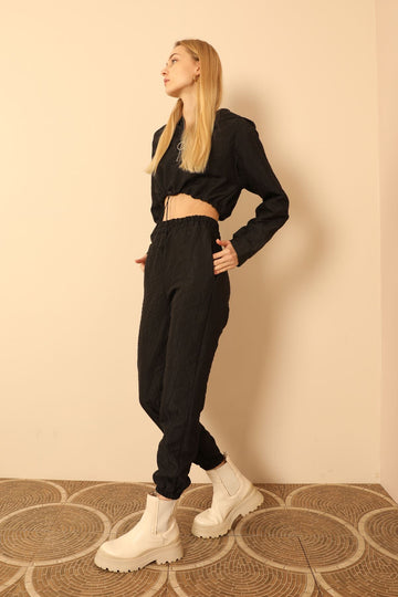 KKT Jakar Fabric Onion Pattern Women Sweatpants-Black - Toluca