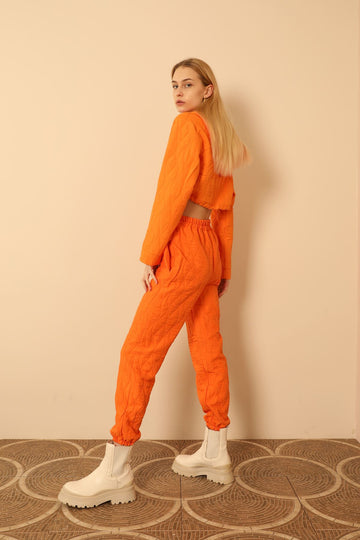 KKT Jakar Fabric Onion Pattern Women Sweatpants-Orange - Cupertino