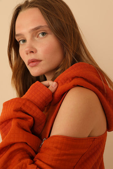 KKT Jesica Fabric Long Sleeve Hooded Oversize Zip Women Sweatshirt - Cinnamon - Hampton