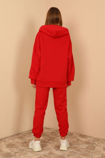 KKT Jesica Fabric Long Sleeve Hooded Oversize Zip Women Sweatshirt - Red - Khrustalnyi