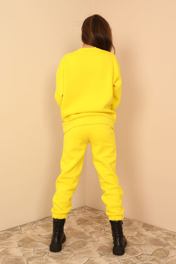 KKT Third Knit With Wool İnside Fabric Long Sleeve Below Hip Women Sweatshirt - Yellow - College Park