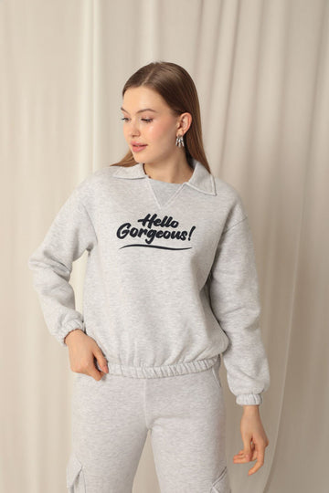 KKT Three Thread Fabric Hello Printed Women's Gray Sweat - Braintree