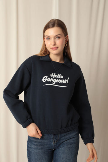 KKT Three Thread Fabric Hello Printed Women's Navy Blue Sweat - Mulhouse