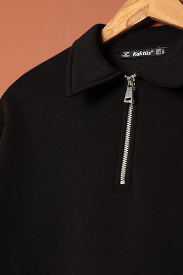 KKT Three Thread Fabric Zippered Hooded Short Women's Black Sweat - La Vergne