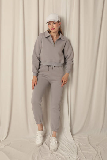 KKT Three Thread Fabric Zippered Hooded Short Women's Gray Sweat - Snizhne