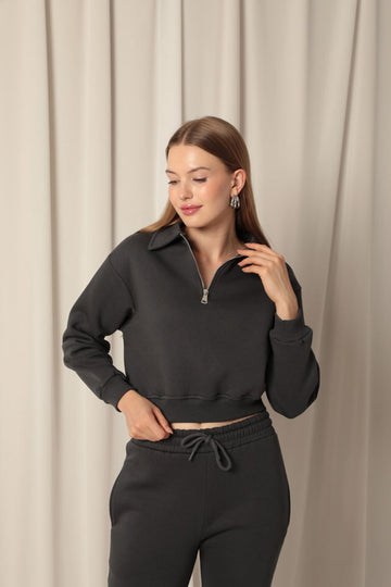 KKT Three Thread Zipper Hooded Short Women's Anthracite Sweat - Soest