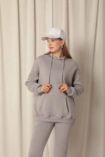 KKT Three Yarn Fabric Kangaroo Pocket Hooded Women's Gray Sweat - Neubrandenburg