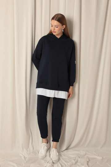 KKT Üç İplik Kumaş Kapüşonlu Kadın Lacivert Sweat - Potsdam