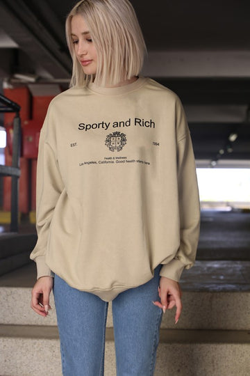 MDX Beige Bicycle Collar Printed Oversized Women's Sweatshirt MG1577 - Yecapixtla