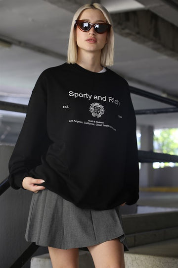 MDX Black Bicycle Collar Printed Oversized Women's Sweatshirt MG1577 - Steyr
