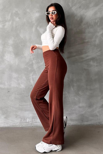 MDX Brown High Waist Straight Model Women's Flared Leggings Pants Mg2288 - Richland
