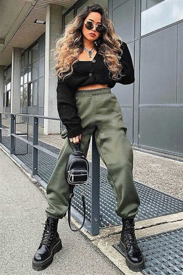 MDX Mad Girls Haki Paça Elastic Oversize Women's Tracksuit MG324 - Celaya