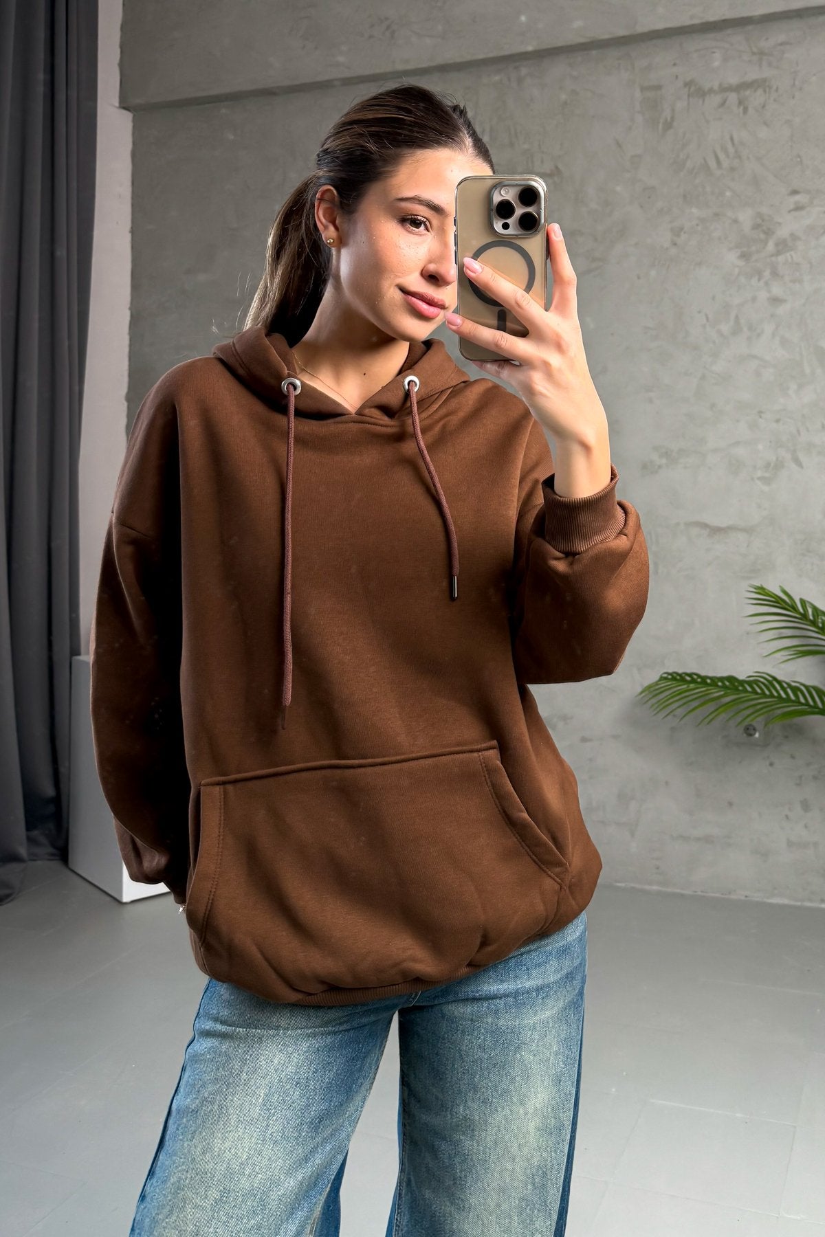MPL Kadın Kapüşonlu Kanguru Cep 3 İp Sweat 21615 - Royal Oak