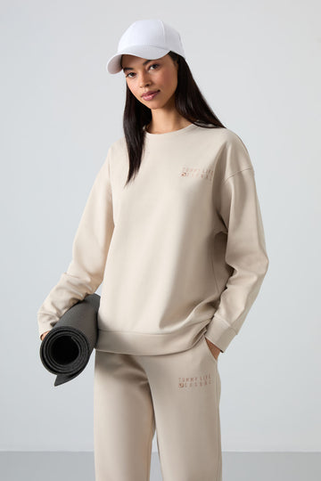 TMY Beige V-Neck Oversized Elastic Cuff Women's Tracksuit Set - 95287 - Rotterdam