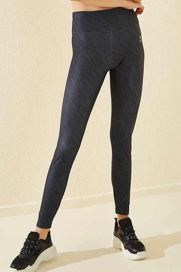 TMY Black High Waist Patterned Slim Fit Skinny Leg Women's Leggings - 94548 - Salihorsk