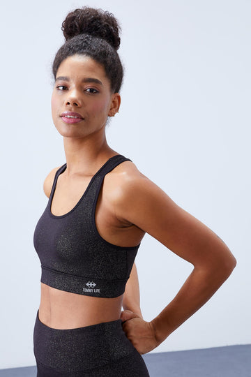 TMY Black-silver - Black High Waisted Shaping Back Detailed Slim Fit Bustier Women's Leggings Set - 95281 - Suffolk