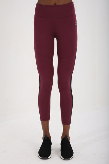 TMY Burgundy High Waist Shaping Tape Detailed Slim Fit Skinny Leg Women's Leggings - 94542 - Leeds