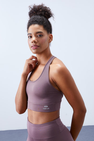 TMY Dried Rose High Waist Shaping Cross Back Detailed Slim Fit Women's Leggings Set - 95283 - Boise