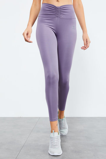 Eflatun Beli Büzgülü Yüksek Bel Streç Slim Fit Women's Leggings - 94605