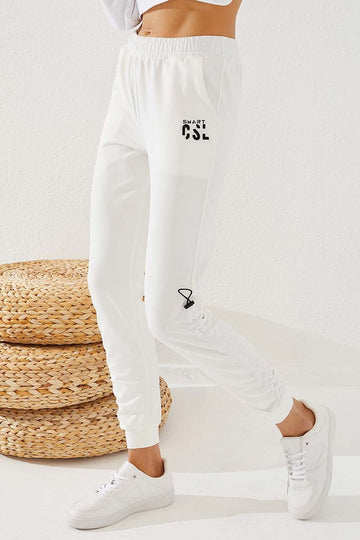 Ekru Extra Detailed Comfort Fit Cuffed Women's Sweatpants - 94587