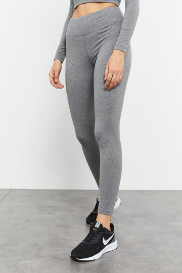 TMY Gray Melange High Waist Long Sleeve Slim Fit Crop Top Women's Leggings Set - 95286 - Rioverde