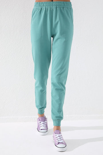 Mint Green High Waist Jogger Comfort Fit Cuffed Women's Sweatpants - 94561