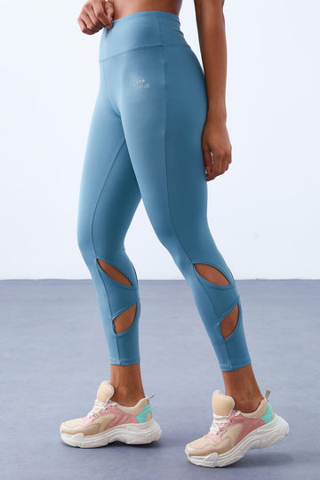 TMY Mint Green High Waist Slim Fit Women's Leggings with Back Ankle Windows - 94611 - Romny