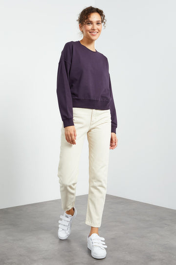 TMY Purple Basic Comfort Fit Round Neck Women's Sweatshirt - 97114 - Polatsk