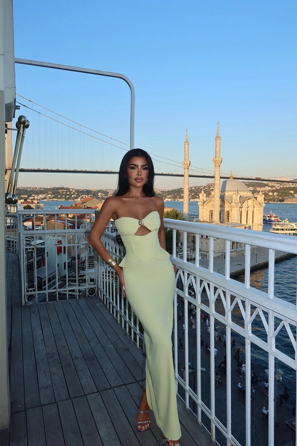 Yellow Strapless Dress with Pocket Detail