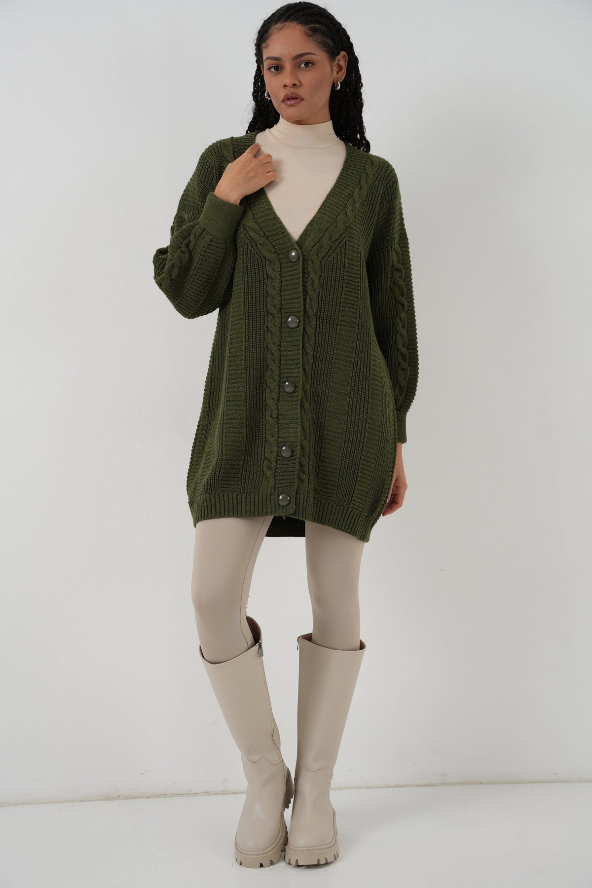 BGD Women Tesettür Triko Hırka - Haki - Călăraşi