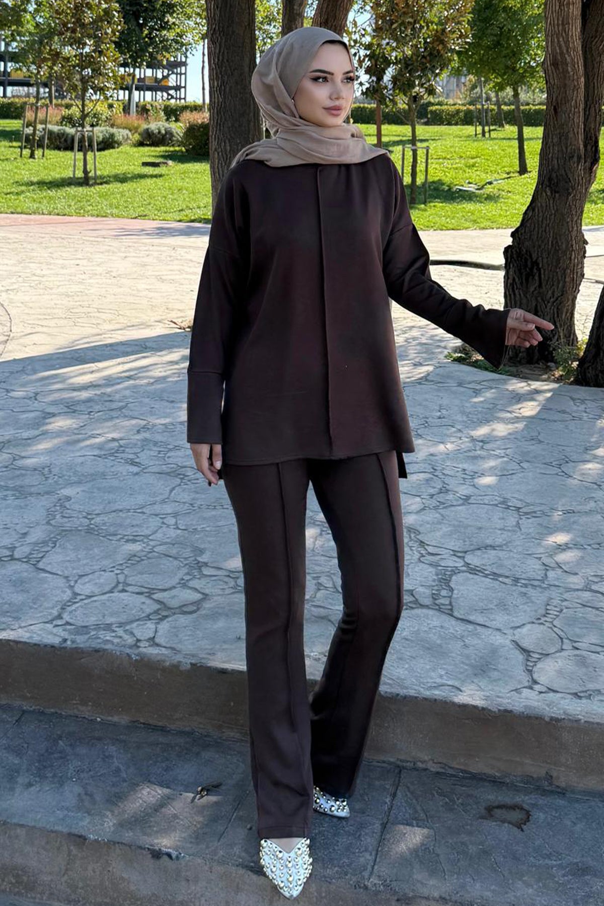 BNG Women Sewing Detailed Two-Piece Set Z5689 Brown - Acharnés