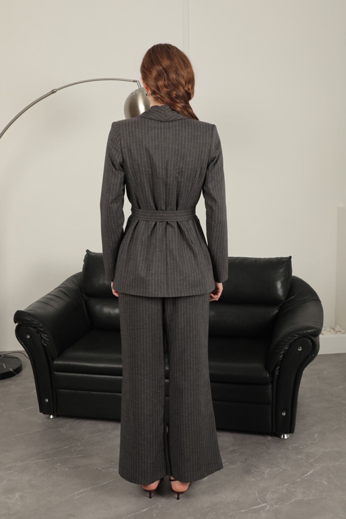 KKT Striped Polyviscon Fabric Women's Suit-Anthracite - Isla