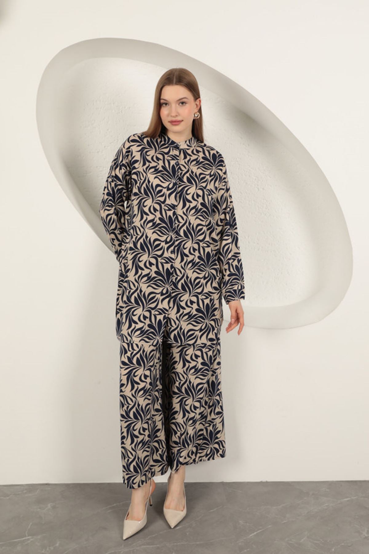 KKT Viscose Fabric Patterned Women's Suit-Navy Blue - Mississauga