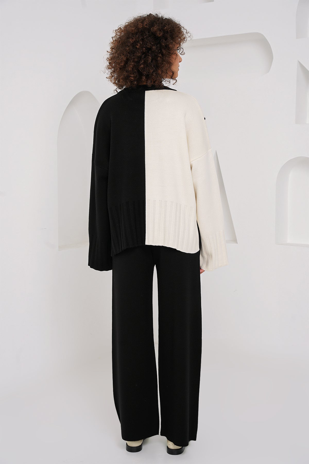 BGD Women Oversized Sweater Pants Suit - Black - Marcianise