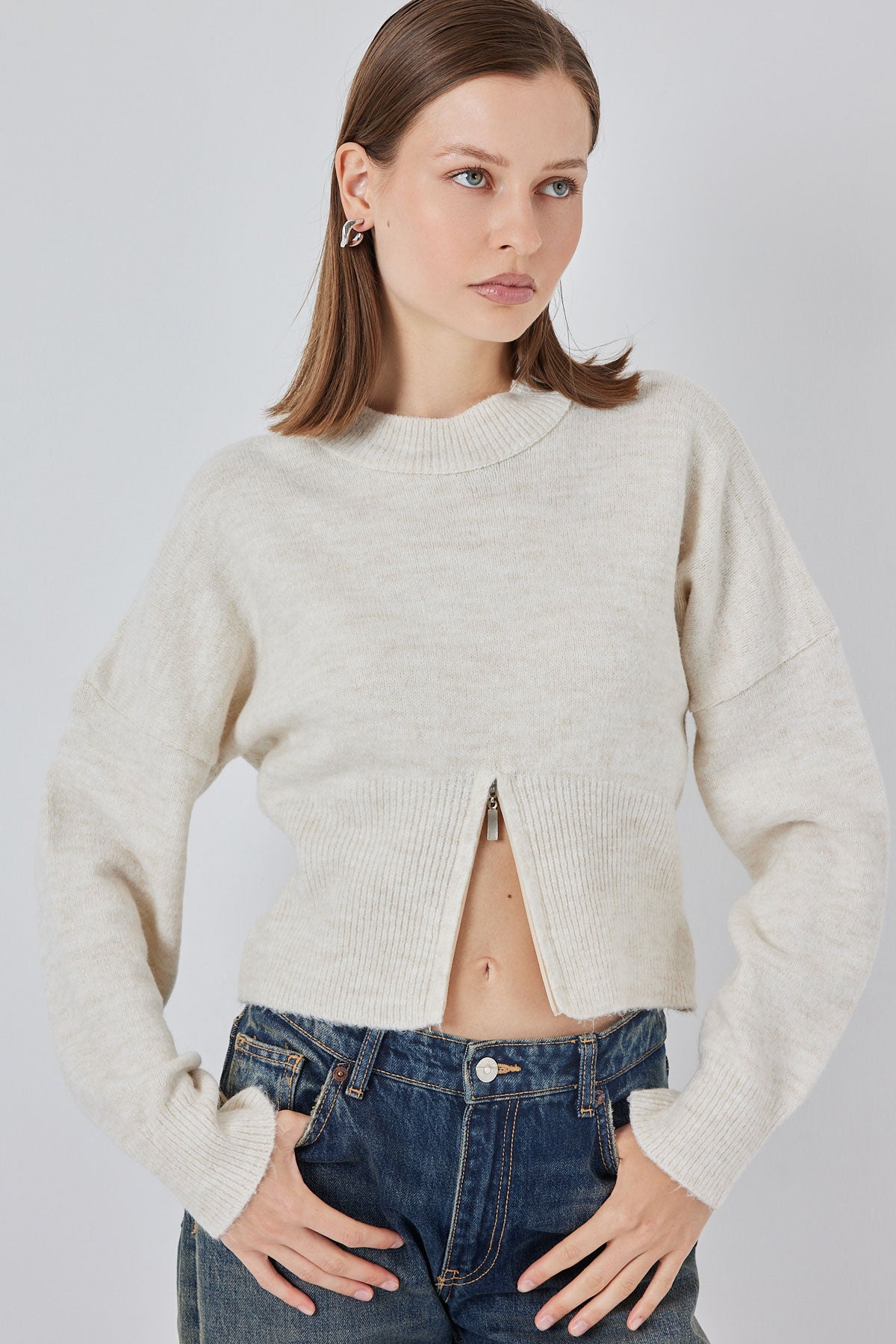 BGD Women Women's Zippered Knit Sweater 15937 - Ecru - Gennevilliers
